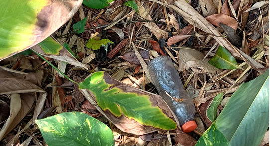 Olhando a praia de relance, ela não parece muito suja, mas é um olhar enganoso, pois há muita sujeira inorgânica escondida espalhada pelos mais diversos caminhos, reentrâncias de pedra e até mesmo na areia. Infelizmente. Garrafas de vidro e cacos de outras garrafas foram os objetos mais perigosos